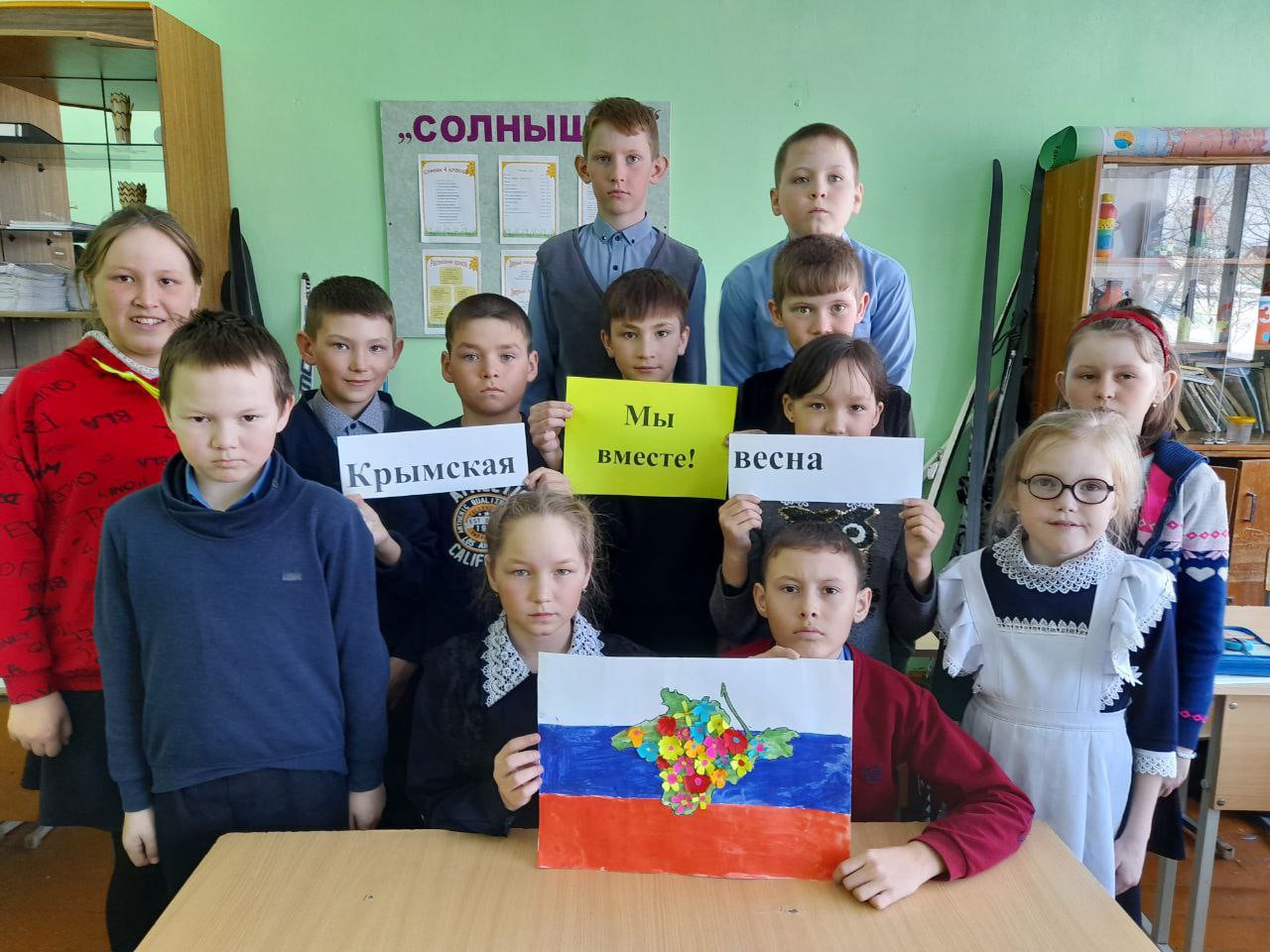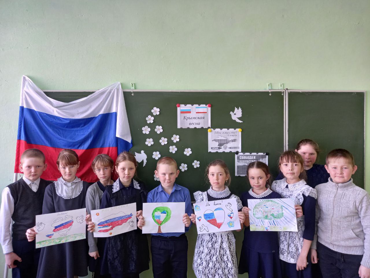 Обучающиеся с 1 по 10 классы МБОУ СОШ с. Нижнебалтачево присоединяются к мероприятиям, посвященным празднованию воссоединения Крыма и Севастополя с Россией "Крымская весна".