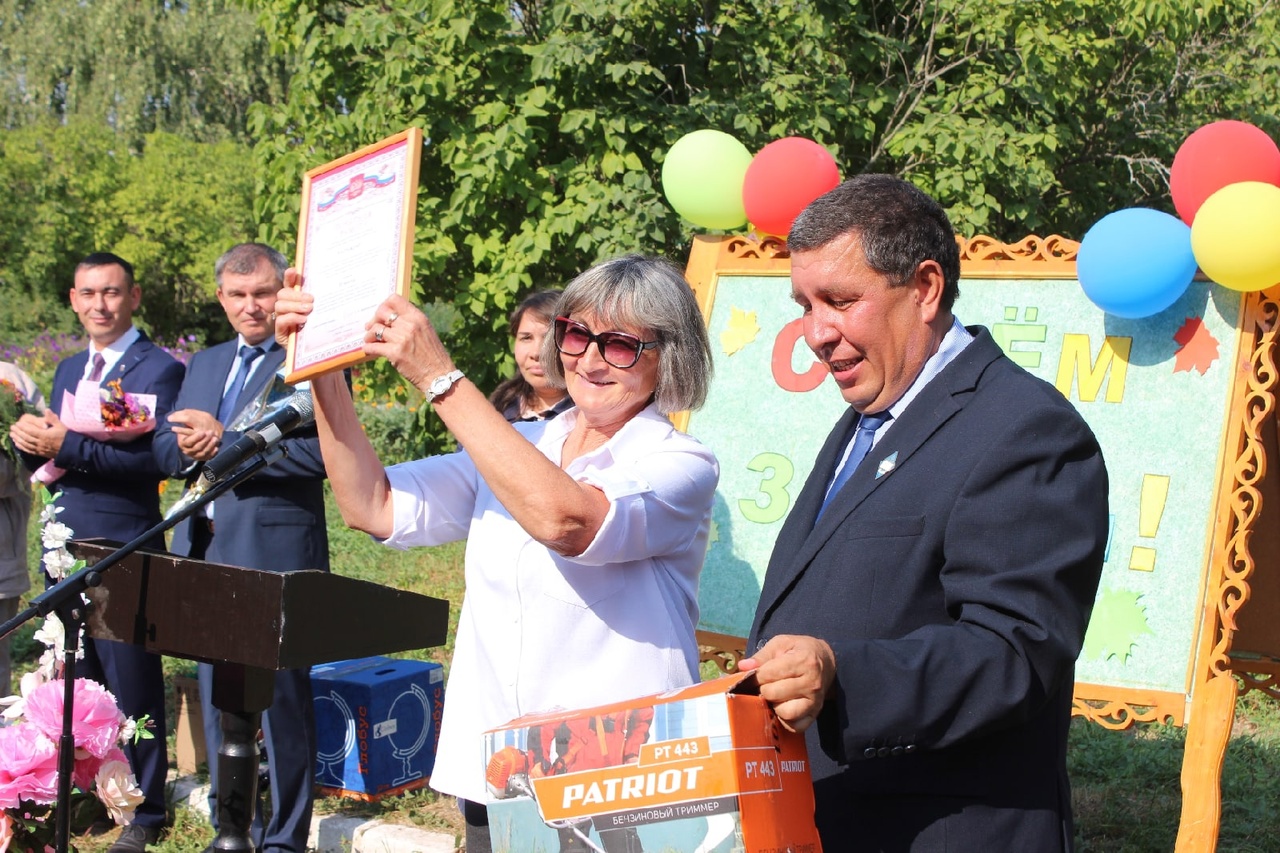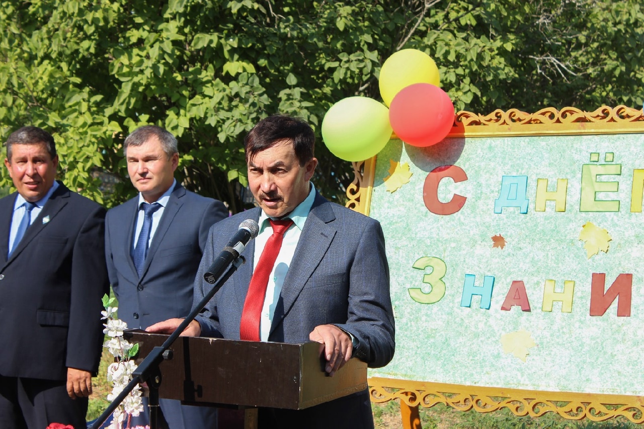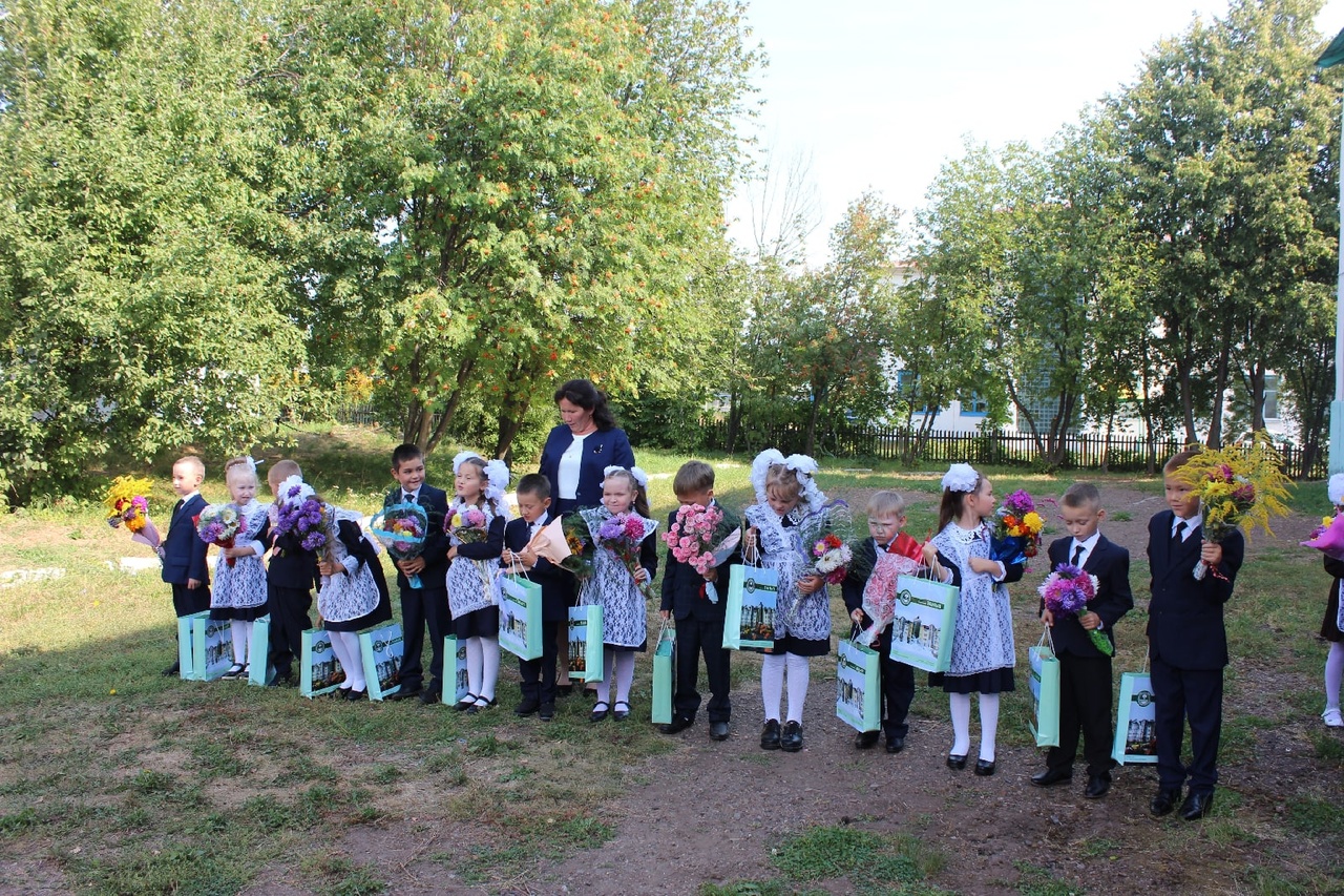 Нарядные ученики и ученицы с пестрыми букетами цветов, учителя и родители заполнили школьный двор. Звучит музыка, и все классы строятся на школьном дворе. Все застыли на торжественной линейке под звуки гимна России и Республики Башкортостан. Всё наполнено торжеством и гордостью, что ты частичка этого действа, этого великого праздника Дня Знаний. Ведь знание каждого из нас – это будущее каждого из нас, это будущее страны. Торжественная линейка объявляется открытой. По традиции первыми представляют малышей-первоклассников, их в этом году 14 . Директор школы и гости поздравили учащихся школы с новым учебным годом, отметив, что учение - нелегкий, но радостный и увлекательный труд. Также первоклассникам были вручены подарки от представителя санатория "Танып", СПК "Рассвет". Представитель администрации Татышлинского района вручил именные сертификаты участникам второй ВПЛ "Юный спецназовец". Пусть новый учебный год станет для всех ярким и плодотворным, пусть будет наполнен творчеством, интересным и полезным общением, духовно, интеллектуально обогатит и ребят, и их педагогов. С ответным словом выступила группа малышей - первоклассников, которые с выражением прочли выученные стихи. День знаний продолжился классными часами.