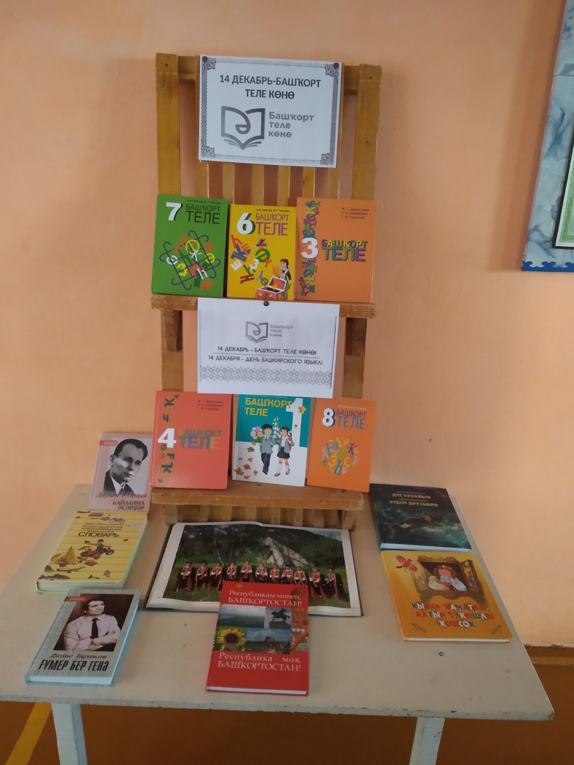 14 декабря в МБОУ СОШ с. Нижнебалтачево провели ряд мероприятий: книжная выставка, игры на уроке по башкирскому языку в 1 классе, конкурс открыток в 5 классе.