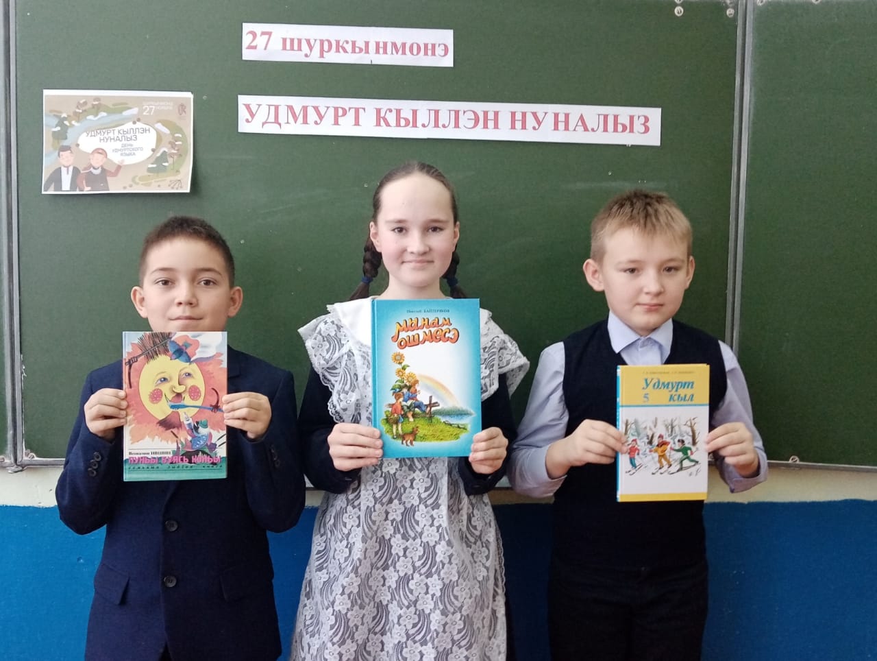 МБОУ СОШ с. Нижнебалтачево с филиалами не осталась в стороне. В честь этого дня во всех классах были проведены разные мероприятия. Обучающиеся 1 класса посетили школьный краеведческий музей. Заведующая музеем провела беседу на тему "Удмурт калыклэн выжыеныз тунсыкьяськиськом, удмурт кылын ми лыдзиськом". Во 2 классе устроили фотосессию "Шуд но бур тыныд удмурт семья" и пели песни на удмуртском языке. В 3 классе провели беседу на тему "День удмуртского языка". Обучающиеся 4 класса показали сценку "Яратоно эше". 5 класс отвечали на вопросы викторины "Удмурт кылын вераськисько - удмурт кылэз мон гажасько". 6 класс ознакомились с удмуртскими народными играми и сами же приняли в них участие. Обучающиеся 7 класса принесли удмуртские выпечки, которые приготовили мамы. 8 класс играли в интеллектуальную игру "Огыр -бугыр шудон". 9 и 10 классы провели беседу на тему "Вашкала удмурт сям-йылольес - бадзым узырлык".