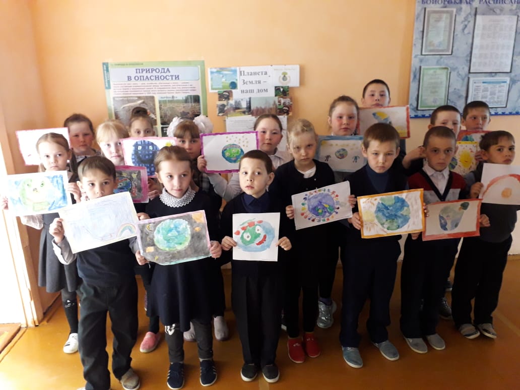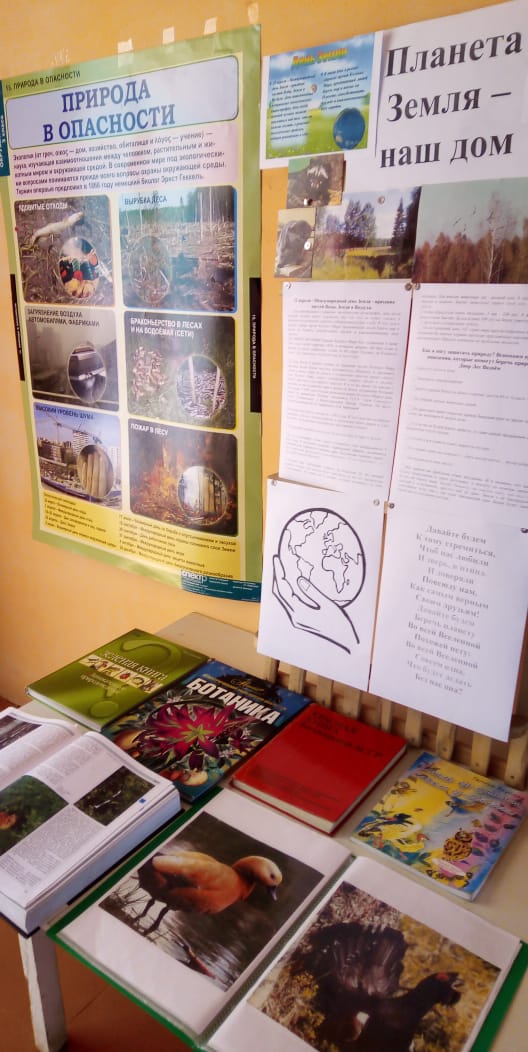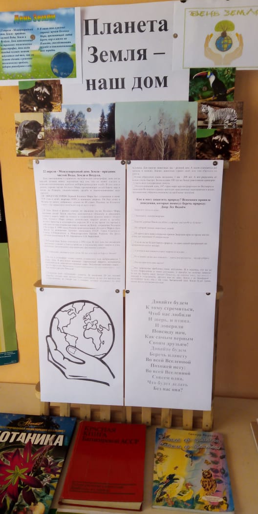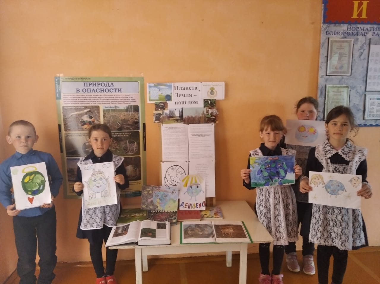 В этот день в МБОУ СОШ с. Нижнебалтачево обучающиеся 1 и 2 классов участвовали в конкурсе рисунков, посвященных Дню Земли. Также в коридоре и школьной библиотеке организовали выставку.