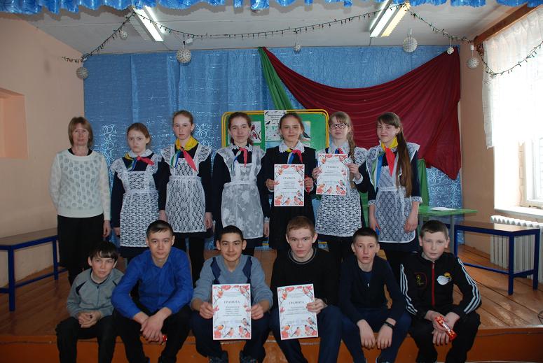 5 апреля учитель биологии Самирзянова Г.М. провела конкурс «День птиц», посвященный Году экологии. В игре участие принимали обучающиеся 7-8 классов. Игра получилась интересной и азартной. Ребята отгадывали загадки про птиц, показывали пантомимо, в конкурсе художников рисовали птиц по частям тела, узнавали птиц по голосам. Команда 7 класса «Жар-птицы» заняла I место, «Ястребам» досталось II место. Также были выявлены лучшие знатоки птиц среди команд.