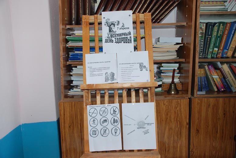 Школьным библиотекарем была организована выставка в библиотеке, проведена акция «Если хочешь быть здоровым…». Также классный руководитель 9 класса Губаев Р.В. провел конкурс среди юношей по поднятию гири, по подтягиванию на перекладине, а 10 класс совершил весеннюю прогулку в лес на лыжах.