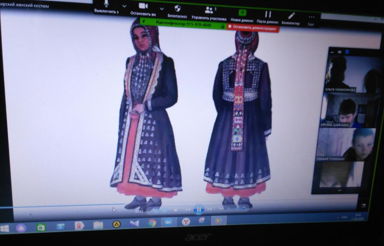 17 апреля 2020 года в Республике Башкортостан объявлен Днем национального костюма. Наша школа не осталась в стороне. Почти во всех классах (с филиалами) были организованы и проведены онлайн-уроки, посвященные этому событию. Дети узнали об истории и особенностях национальных костюмов и традициях башкирского, русского, татарского, чувашского, марийского, удмуртского и других народов, проживающих на территории Республики Башкортостан. Были рассмотрены множество национальных костюмов, их колорит, вышивка, которые нас сейчас заставляют восхищаться. Также дети сами постарались нарисовать национальные костюмы. Все это мероприятие заразило нас оптимизмом, настроением праздничности и веселья.