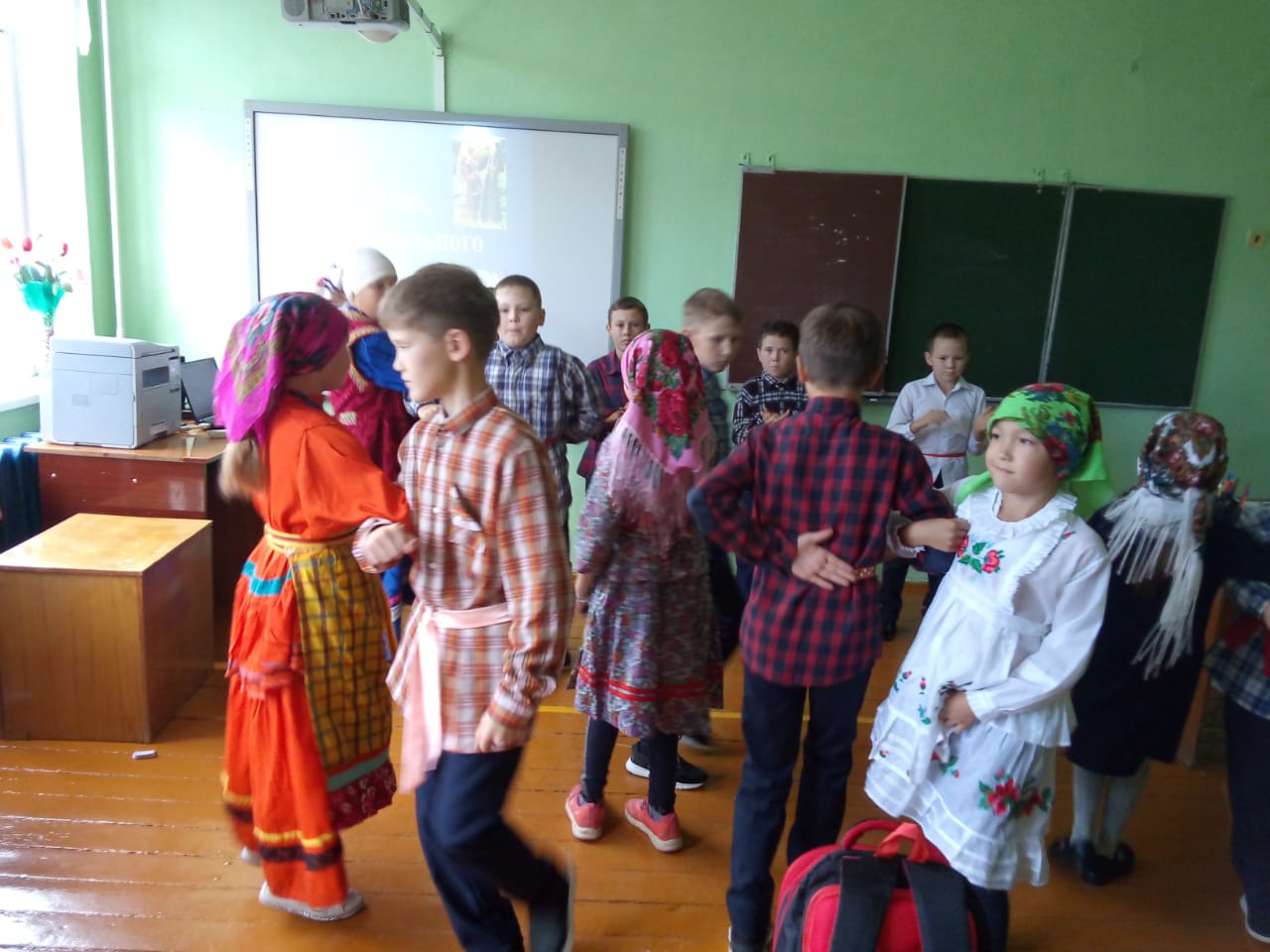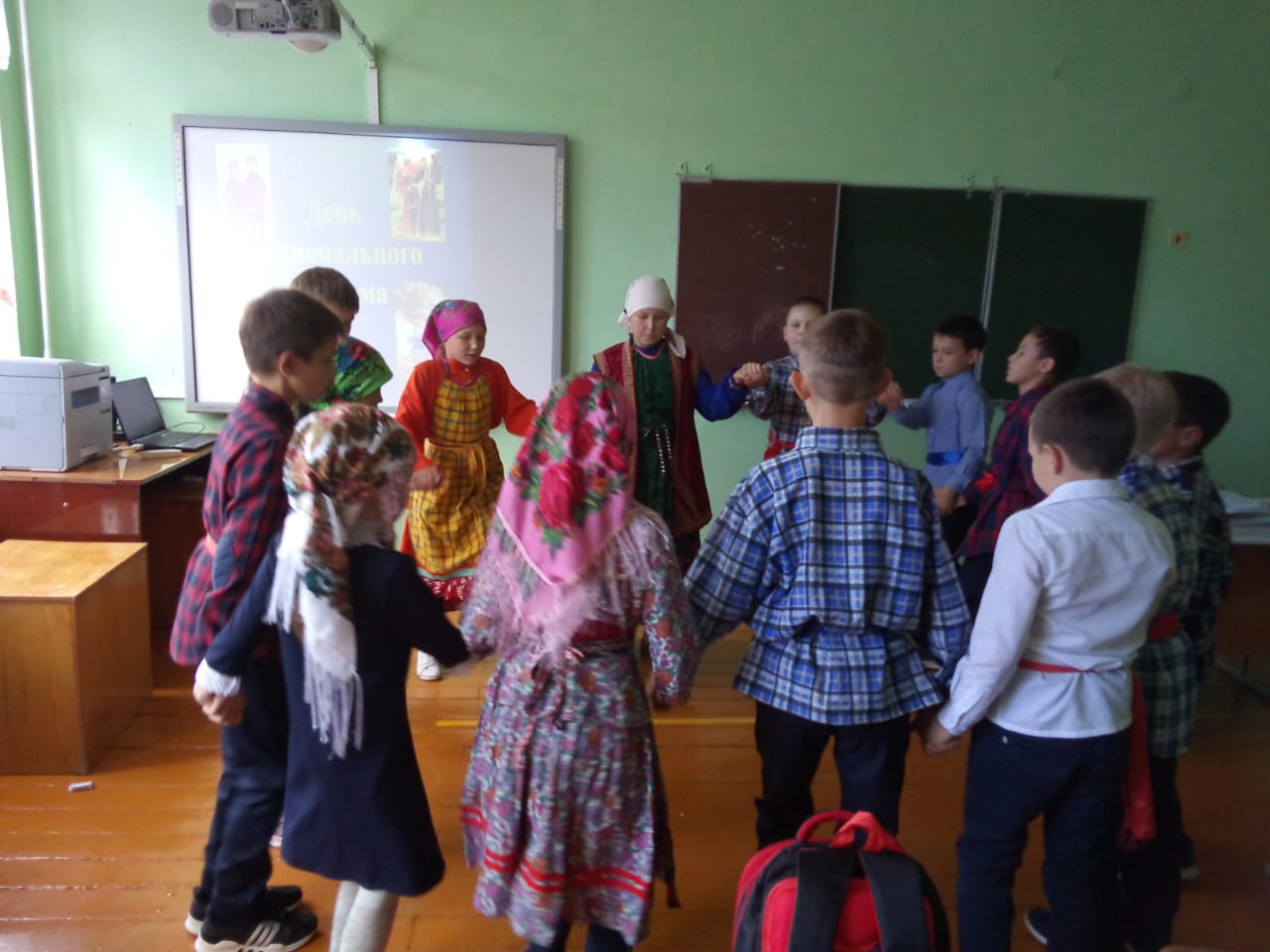 В 1 классе провели удмуртские национальные игры. Во втором и 3 классах мастер-классы по плетению из бересты - браслеты. В 4 классе вспомнили удмуртские национальные танцы. В 7 классе мастер – класс по изготовлению кукол-оберегов. В 8-10 классах тоже мастер-классы по изготовлению оберегов. В 6 классе прошел флэшмоб, все учащиеся были в национальных костюмах. Также в школьной библиотеке была сделана выставка книг, посвященная этому дню.